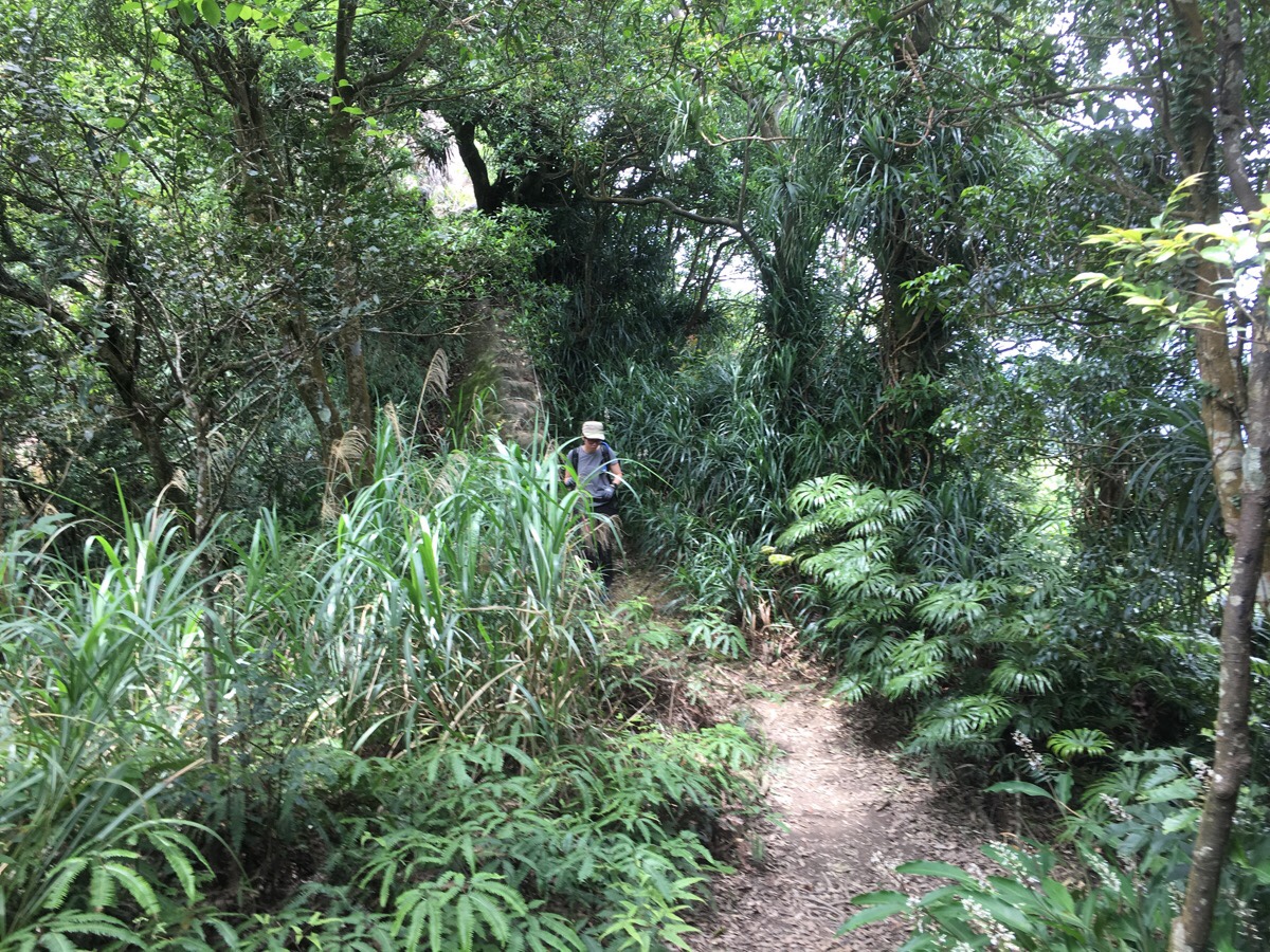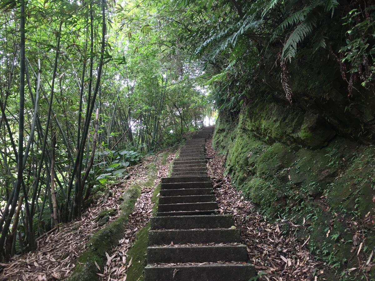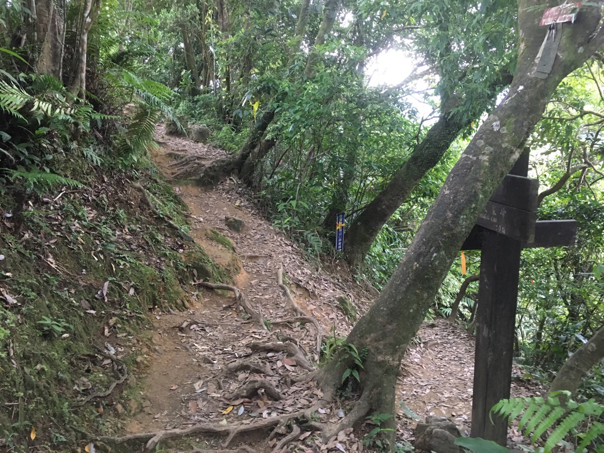 We parked up at the car park around 11am, (a late start for us, but then we’d already knew what we were in for). I was planning on using the portaloos, but both had been colonised by oversized mosquitos and I didn’t much fancy baring my behind to them. Just across the road from the carpark is a flight of stairs leading up and left. A nearby map notes this as being Shihding Nankan Mountain Hiking Trail. About five or ten minutes before we started, a couple with a big scooter had just set off up the steps, and we soon encountered them coming down again. I passed them ahead of Teresa and overhead them saying “Why does she look like she’s going to climb Yushan?!” (Believe me, I didn’t, I had a small day pack with a hydration bladder and a hiking pole – not quite Yushan levels of preparedness.) After Teresa passed them, I noticed that they had turned around again and were now following us back up the hill. I can only assume that they had been questioning if they were heading in the right direction. We quickly lost sight of them.