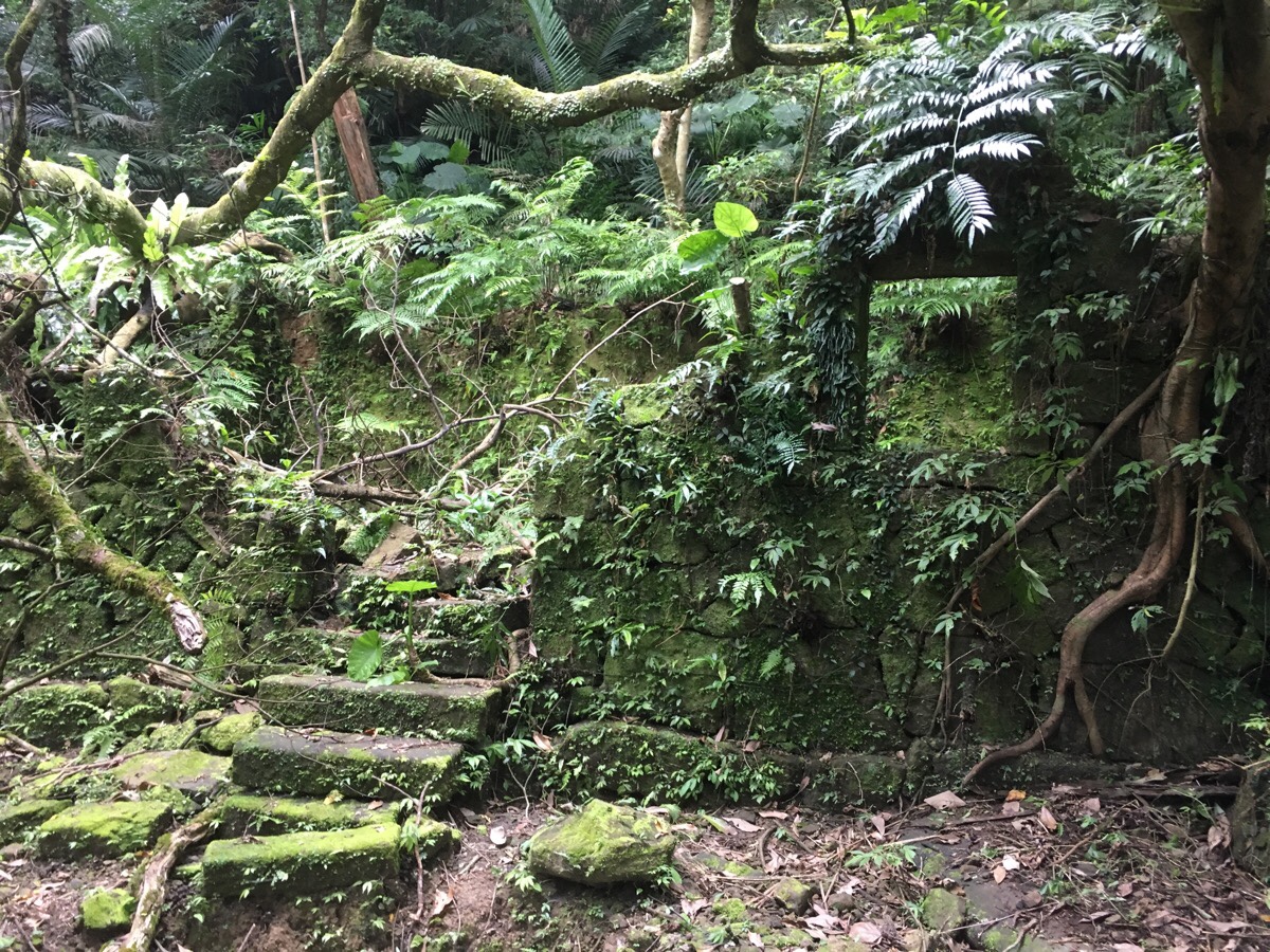 Further down, an abandoned dwelling is slowly being reclaimed by the forest.