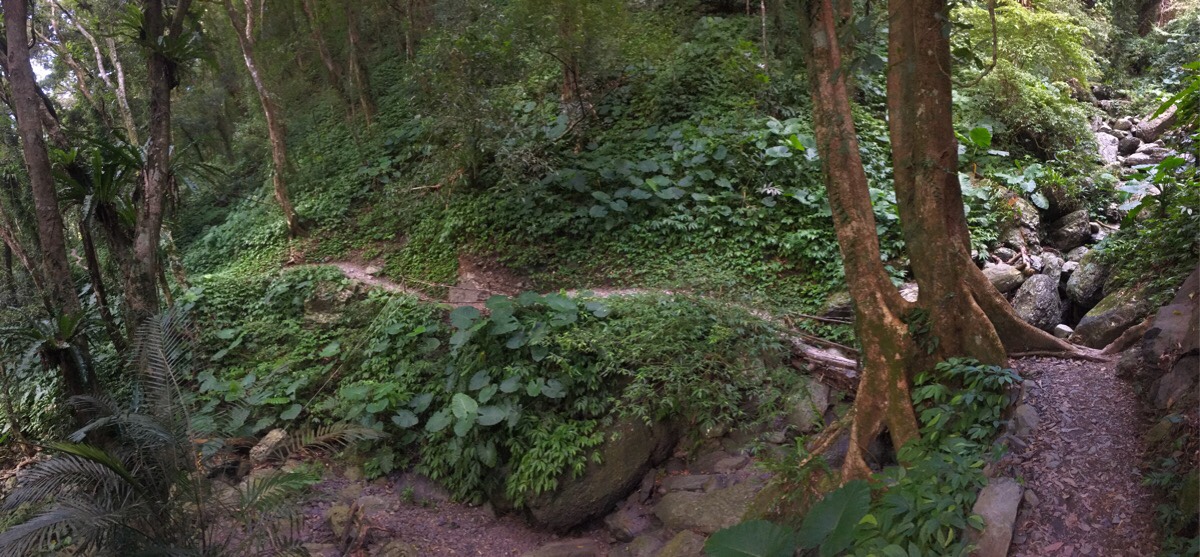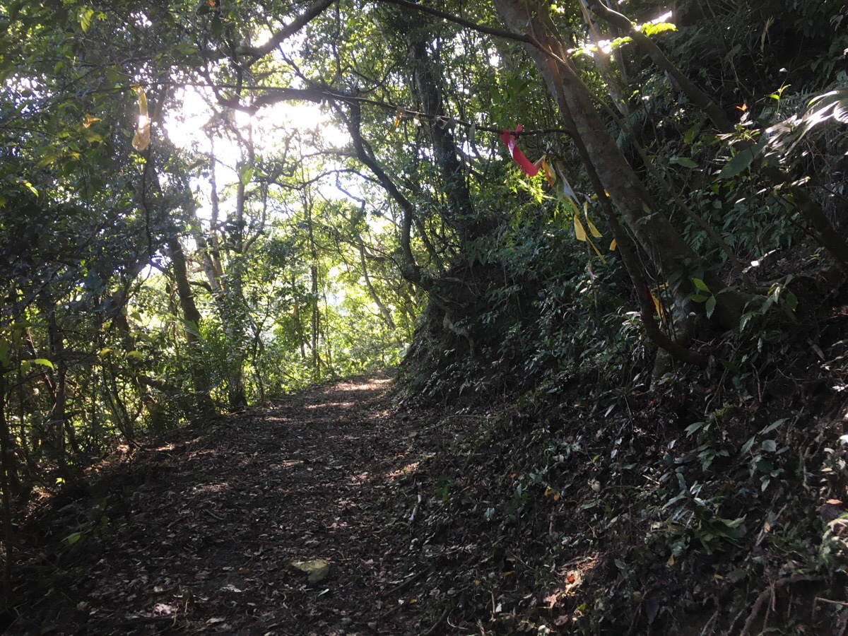 A little way down from the peak there was a splitting of the paths. Again, we followed the red signs directing us towards the waterfall, (往雲森瀑布). Since the walk traces the edge of a valley, you basically just need to make sure that the land to the left of you is always lower than the right.