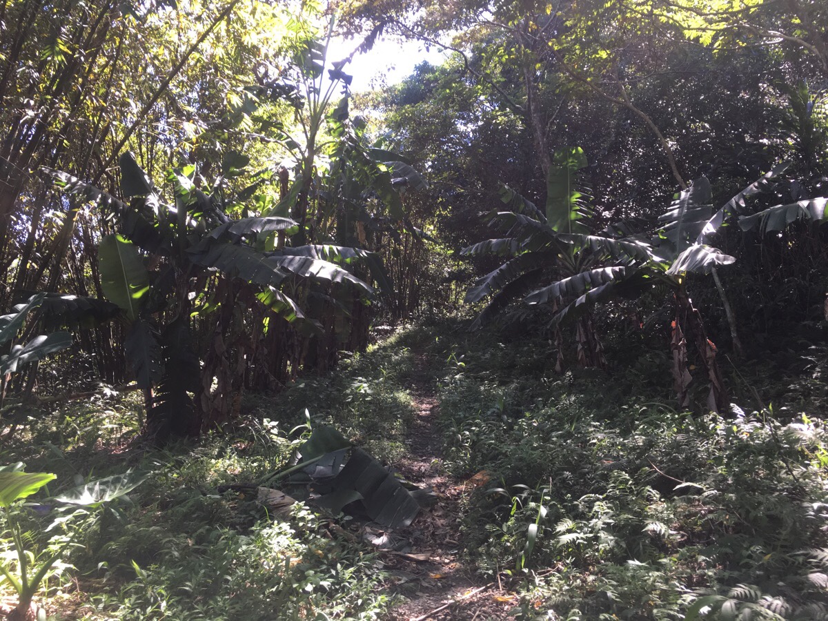 As the trail finally leaves the more cultivated land behind, it passes through one last stand of banana trees. The plants were heavy with green fruit, and since this spot looks like it had now well and truly been handed back to nature, I imagine that some hikers in a couple of weeks might find themselves enjoying an unexpected bounty.