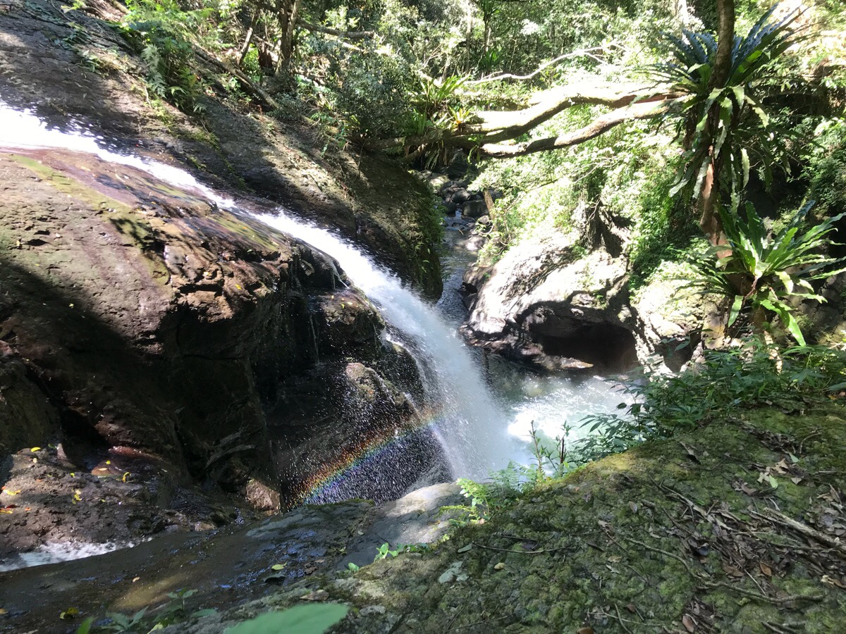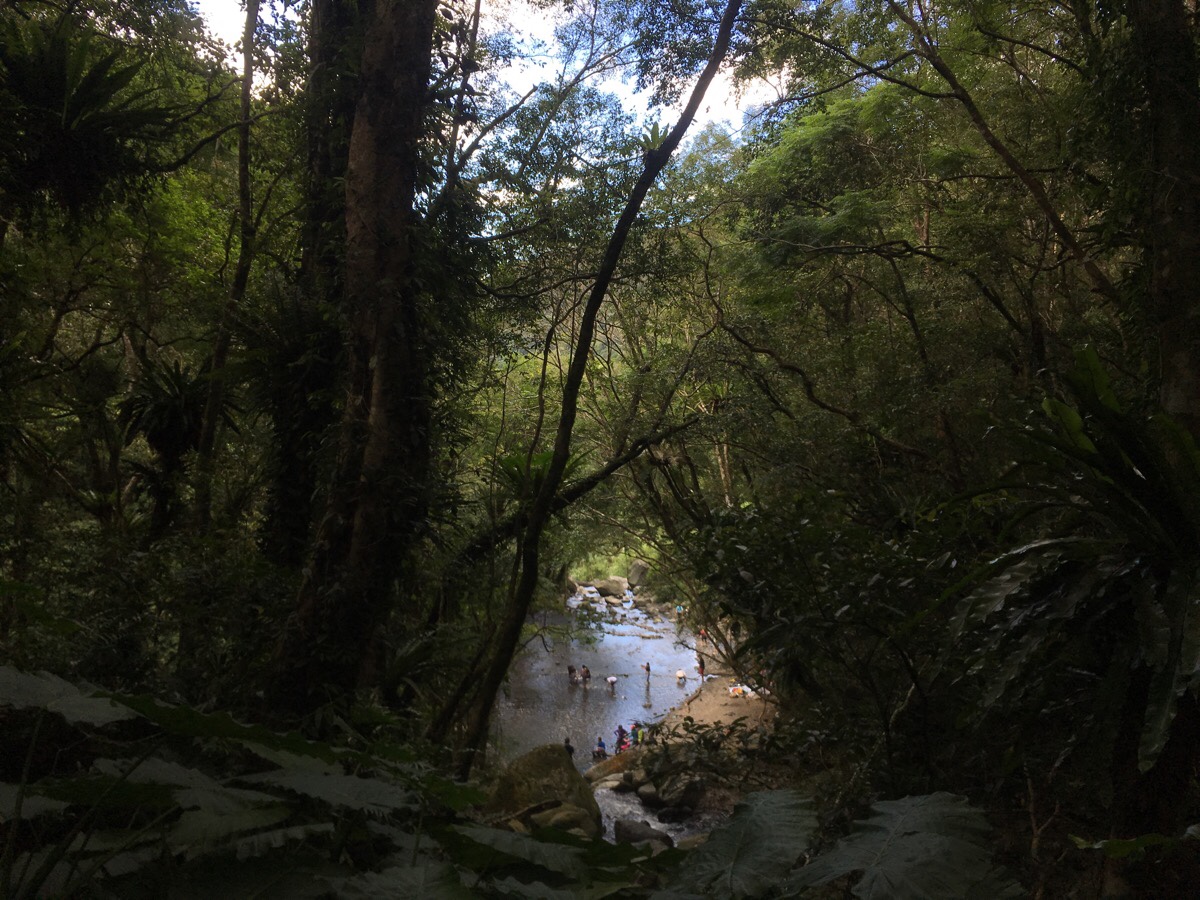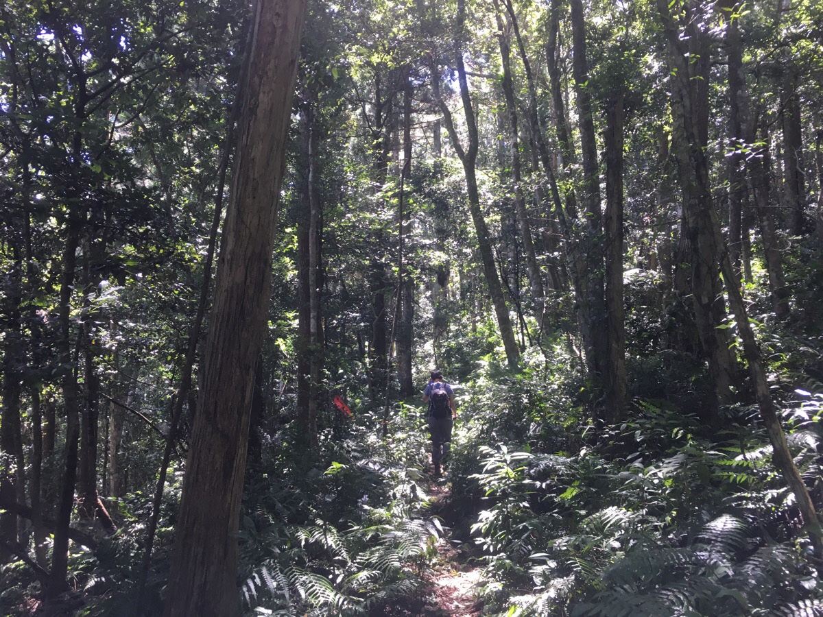 Whilst it was clear and easy to follow the path, it was clear from the exuberant plant growth crowding the trail that this isn’t a very heavily trafficked path. We met just one other person heading up in this section, a lone older gentleman who we passed as he was having a quick snack break. But what this trail lacked in human activity, it more than made up for in bird life. We didn’t see so many of the critters, most seemed to be somewhere high up above the lowest level of leaves, but the range of birdsong was near orchestral.