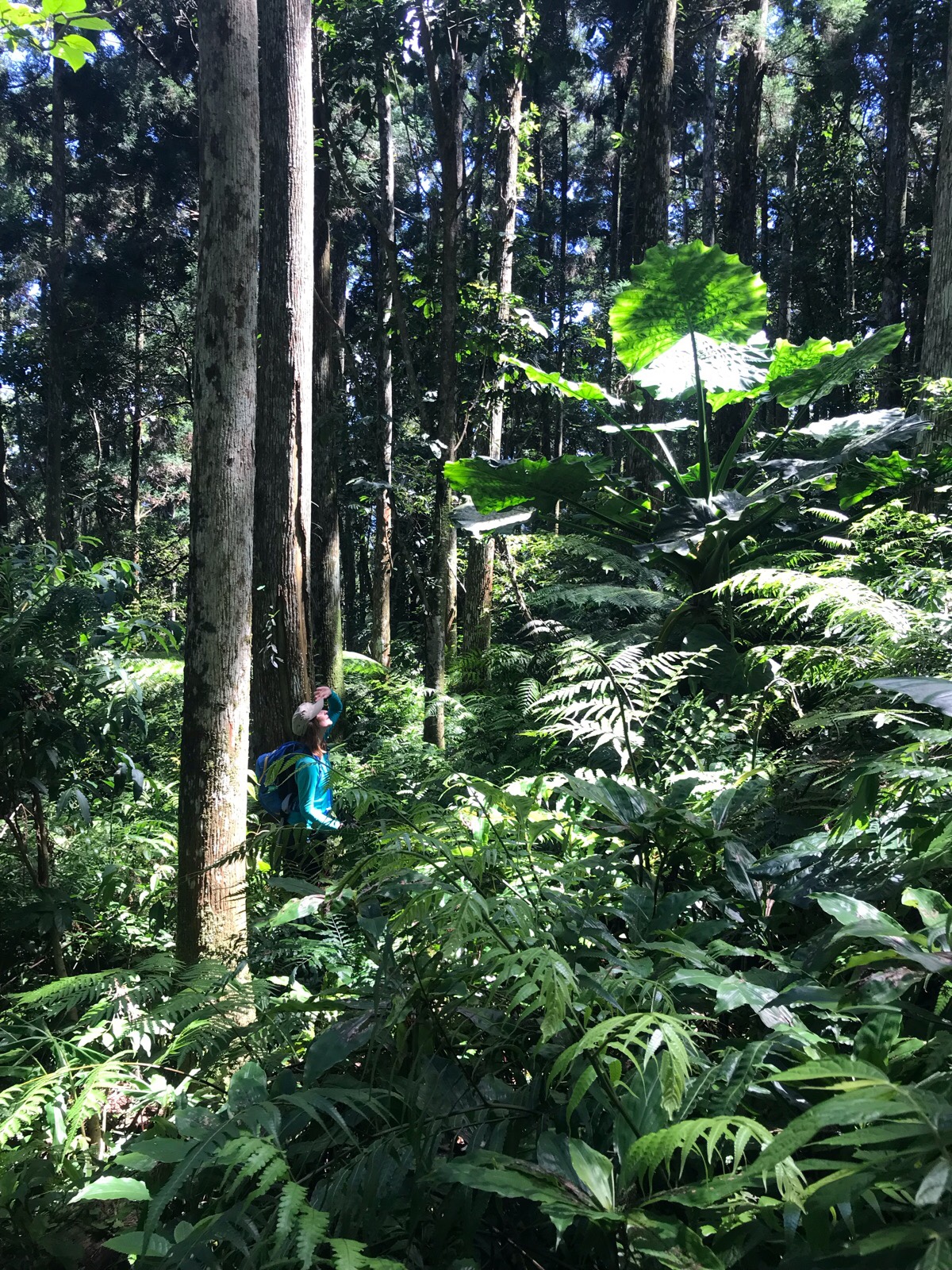 I have to impress upon you just how beautiful the forest is here. I know Taiwan has a lot of beautiful forests, but this was breathtakingly so. When we are walking, Teresa will stop to great every single animal we pass, but what stops me is the amazing plant life. This giant elephant ear plant was nearly three times my height.
