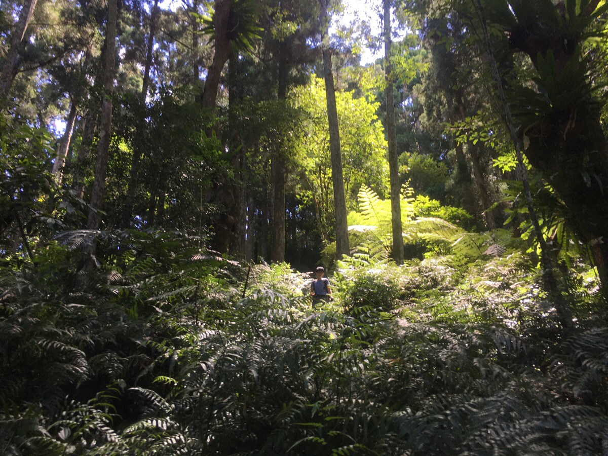 Here any vestiges of a farming track were left behind and replaced with a narrow track through lush forest. Many varieties of ferns carpeted the forest floor, tall trees formed a shady canopy and there was more greenery of different kinds at every level.