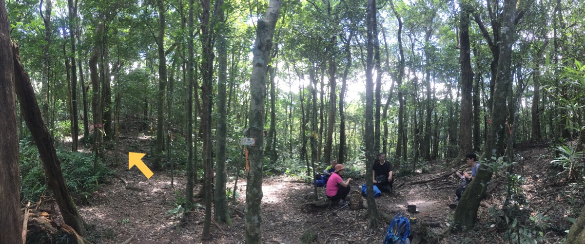 As I heated up water for a cup of coffee, they gave us a couple of recommendations for other places that we should visit. One was Shitou Shan in Taoyuan, Fuxing District and the other was Da Xue Shan, (I think it’s a no-permit-required high mountain). The lone hiker we’d been leapfrogging with arrived and sat down at the edge of the clearing – when questioned by our new friends, he said he was hoping to push on up to a further more distant peak, (I forget the name), but they cautioned him against it given how late it was in the morning. Then just as we were finishing the coffee, Mr Mansplainer and his mute companion rocked up and doled out further unsolicited advice – the older couple elegantly dismissed it by bringing out their local credentials, and before he could start on Teresa and I again we were waving our goodbyes and continuing along the path. The trail here heads pretty much straight through, keeping the clearing on the right, and is signposted as heading towards the waterfall (往雲森瀑布).