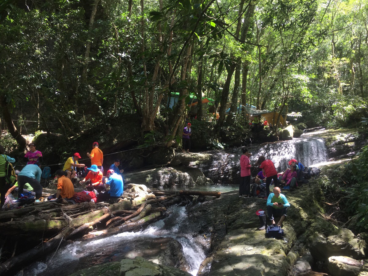 Along with the roar of the water, a whole other kind of clamour became audible – the collective chatterings of many hiking groups. It is clearly a very established rest spot, since outdoor kitchen facilities had been installed to allow for cooking and water filtration. They’d spread out around the stream to eat, rest, and enjoy the 熱鬧 (lively) atmosphere that comes from being squashed together with many other people. We held out hope for a quieter spot to have our lunch, and so we crossed the water and headed left downhill to find some space.