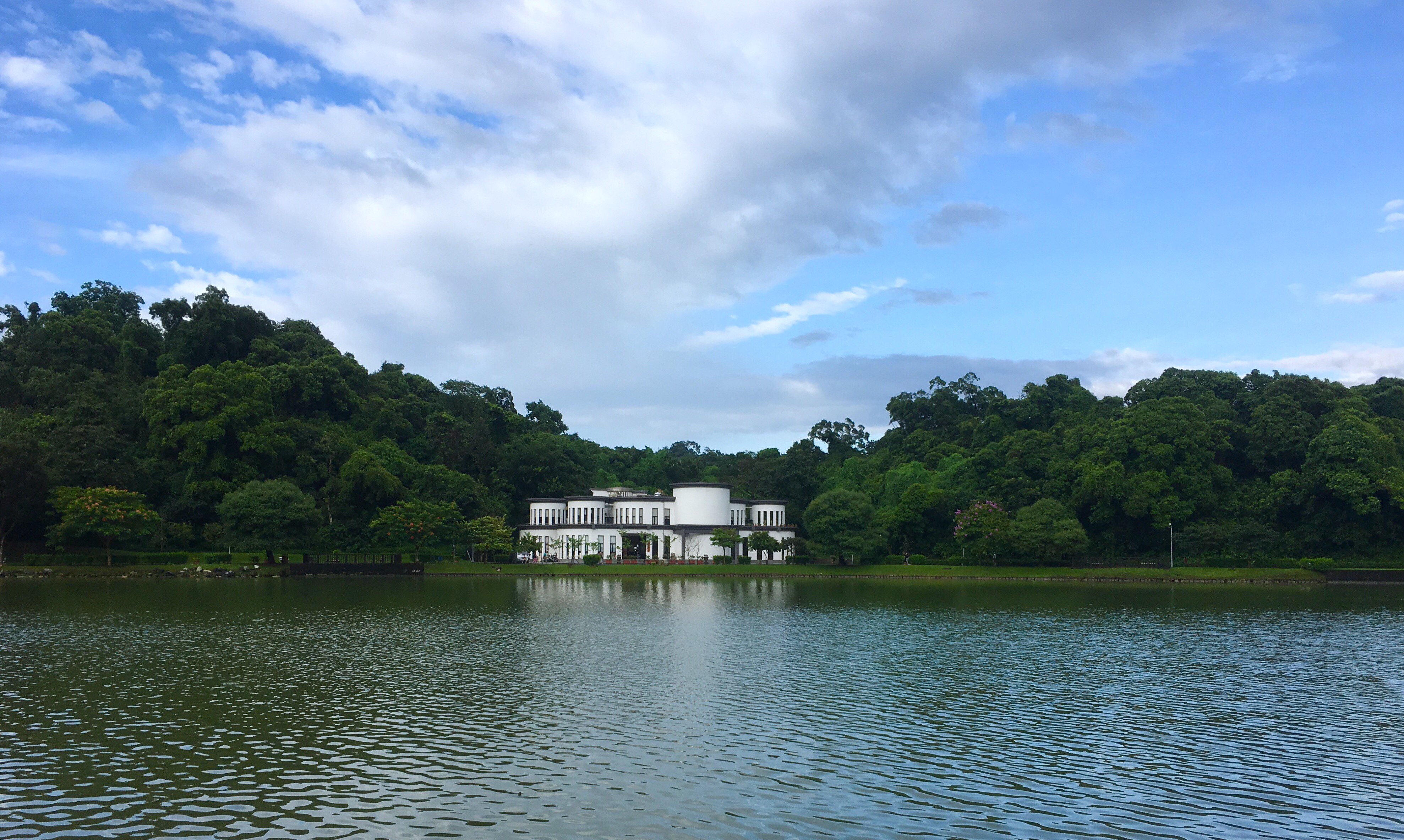 Walking clockwise around the lake you can spot an interesting white building – it houses park management and security. If you take the wooden walkway along the lakeside, you probably won’t notice the tennis courts and swimming pool that are up in this northernmost tip of the park.
