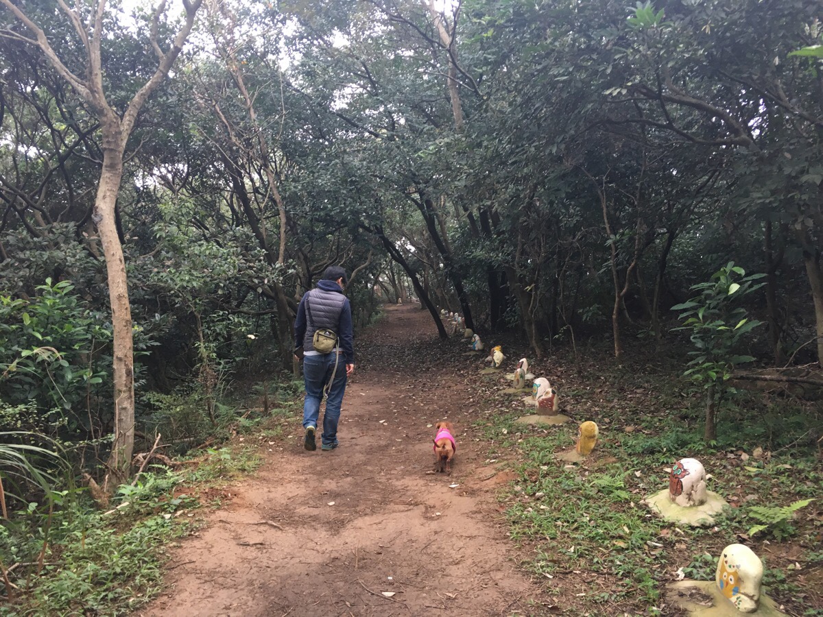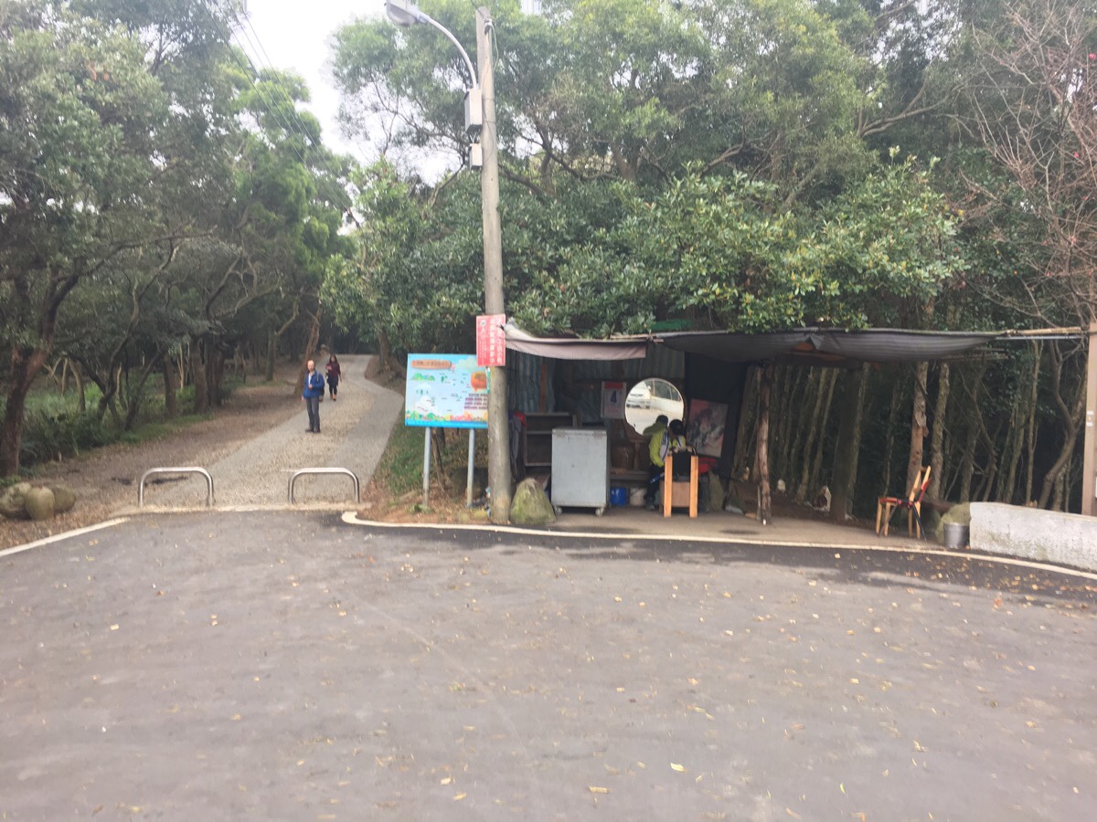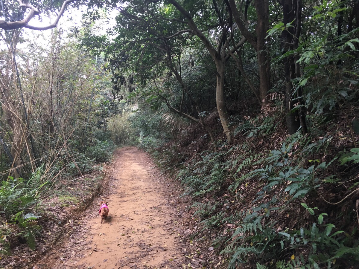 Chinese New Year cabin fever having seeped in within less than 24 hour hours of returning to Taoyuan, we decided to head out for a bit of an easy leg stretch with the dog. Parking up in the space next to small toilet block and a large shelter, we got Youtiao’s collar on and set off up the gravel road to the left of the sign. (The right hand trail is where we eventually came back from.)