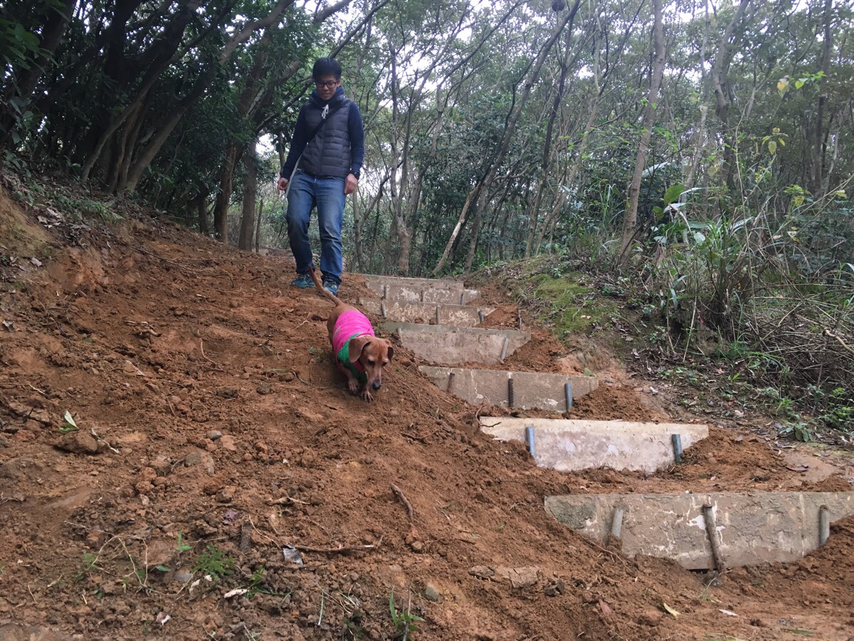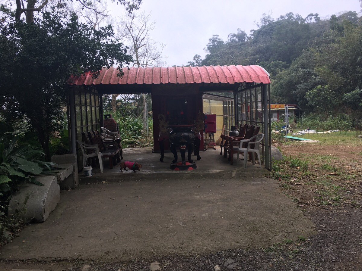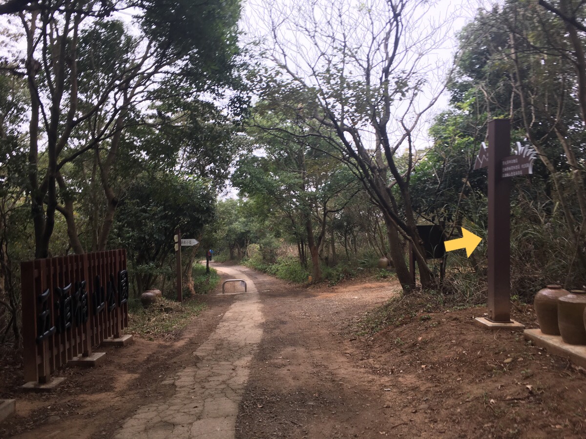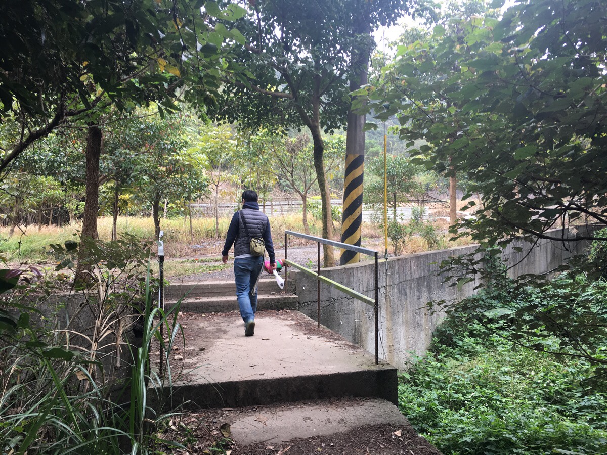 Chinese New Year cabin fever having seeped in within less than 24 hour hours of returning to Taoyuan, we decided to head out for a bit of an easy leg stretch with the dog. Parking up in the space next to small toilet block and a large shelter, we got Youtiao’s collar on and set off up the gravel road to the left of the sign. (The right hand trail is where we eventually came back from.)
