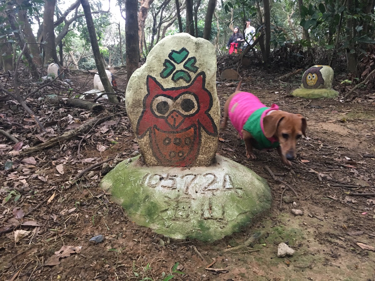 Youtiao was a lot happier to have proper earth underfoot and bounded along at a much more jaunty gait than I’ve seen her do in whilst in Taipei. This path reminded me quite a lot of the nearby Yangcho Forest Trail, so perhaps she too was feeling happy to be back in familiar surroundings. At one point, we neared a house where a noisy dog barked to show that we’d not managed to sneak past unnoticed. And a little further along the trail, an almost unnoticeable grace sat half swallowed up by the trees – Teresa passed by without even noticing.