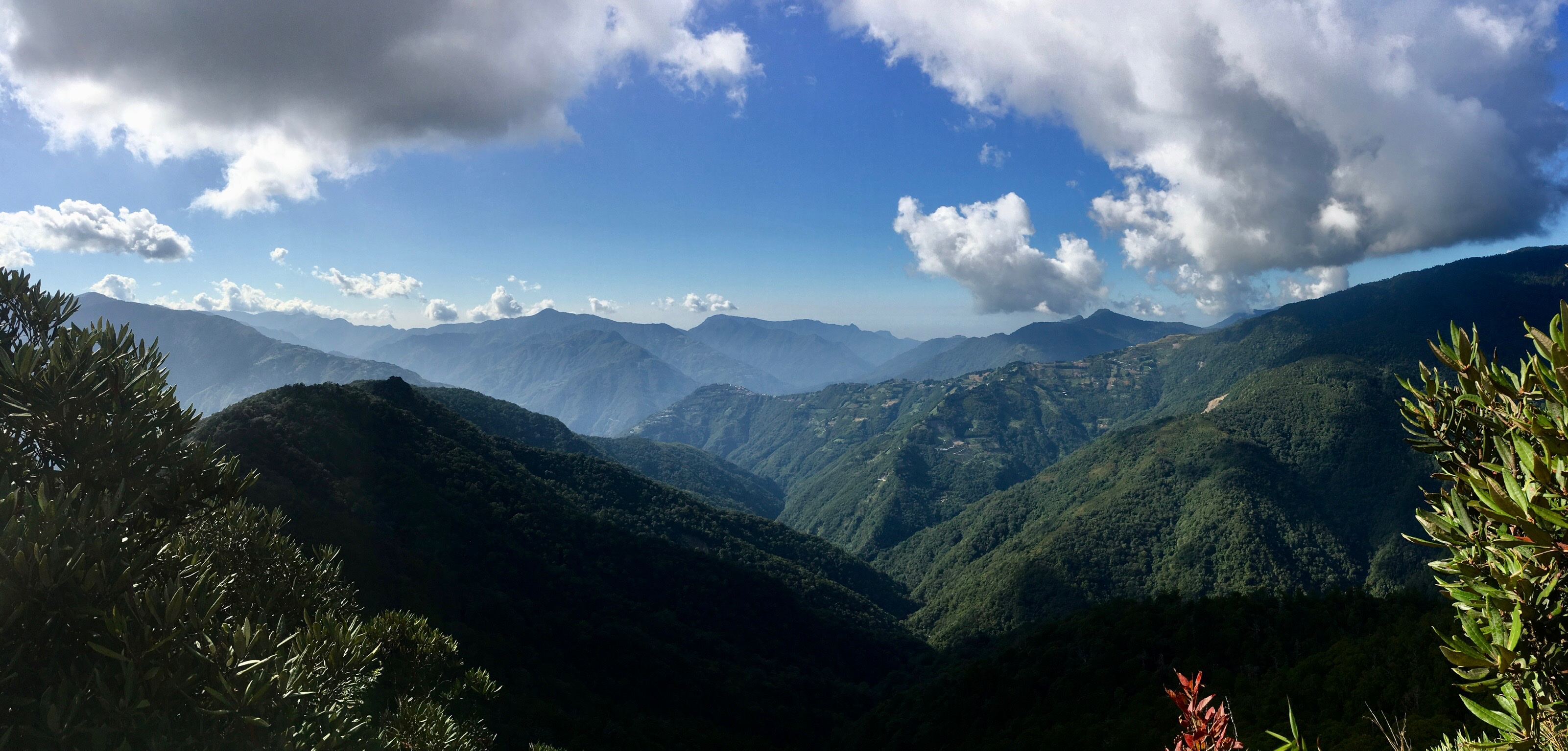 Right before the peak the walk offers up its grandest view. (The peak itself is somewhat surrounded by bushes, you can see, but the view is partially obscured.) Suddenly all the mud and bamboo seemed worth it.