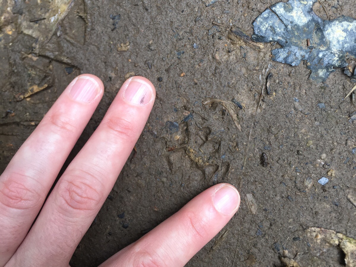 The second mystery came at about the same time. We started noticing these cat-like animal prints in the mud along the path. They were pretty small, between 2-3cm long and across, and it was hard to get a clear picture as it looked like the back prints seemed to fall on top of the front ones. So far I haven’t been able to come up with a good guess as to what might have left them.