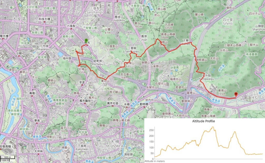 TOTAL ASCENT: Around 550-600m of elevation gain with a little less descent. The highest point is Muzhi Shan at an elevation of 313m.