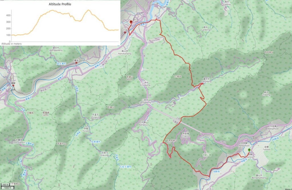 Tamsui-Kavalan Trails – Neiganjiao to Shifen Map