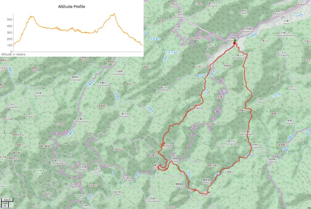 Google Maps address: I started and ended my loop from Ganlin Weihui Temple. There is some space for road parking here. There’s also some parking available near the temple at Sanshuitan which is popular with people who only plan to walk the Kuolai or Beishi River Trails.