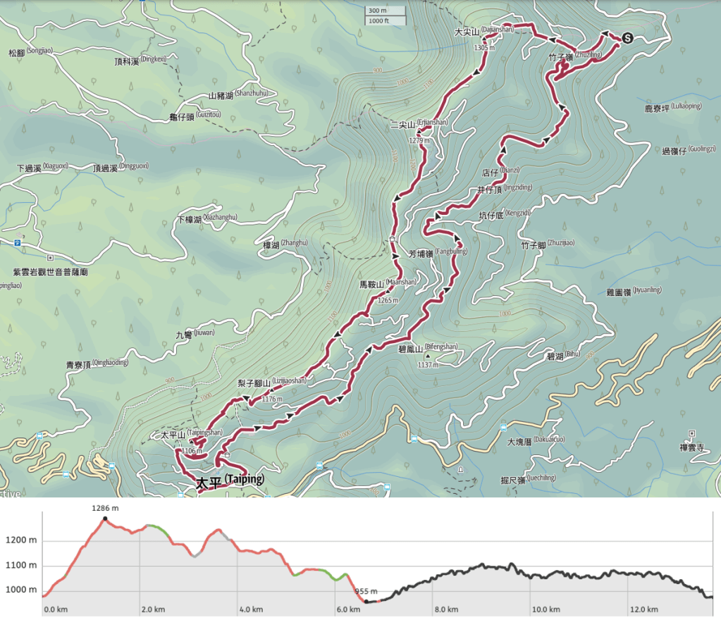 DISTANCE: Nearly 14km – it would be possible to shorten this either by making your way to first Taiping, getting a taxi ride from there to the start of the trail then walking back. Or alternatively you could do a shorter loop starting from Taiping, walking to Longxing Temple along the road and then back over the hills.