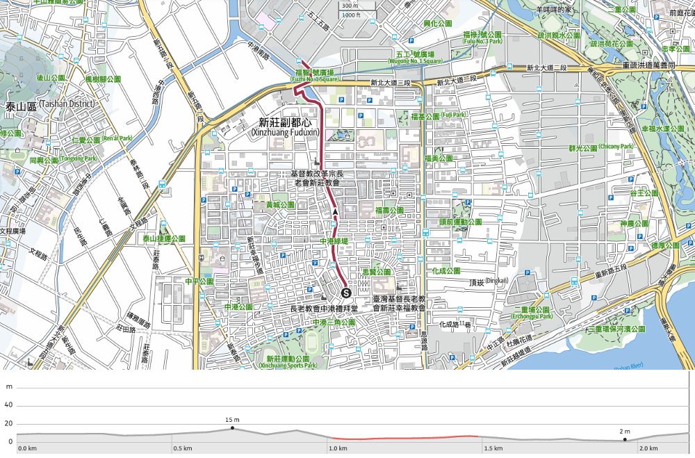 Public transport: I walked to the starting point by following Zhonghua Road up from Xinzhuang MRT Station via one of my favourite vegetarian brunch shops (透早日頭). Then I caught a bus back towards Taipei from the Labour Activity Centre bus stop on Wugong 6th Road