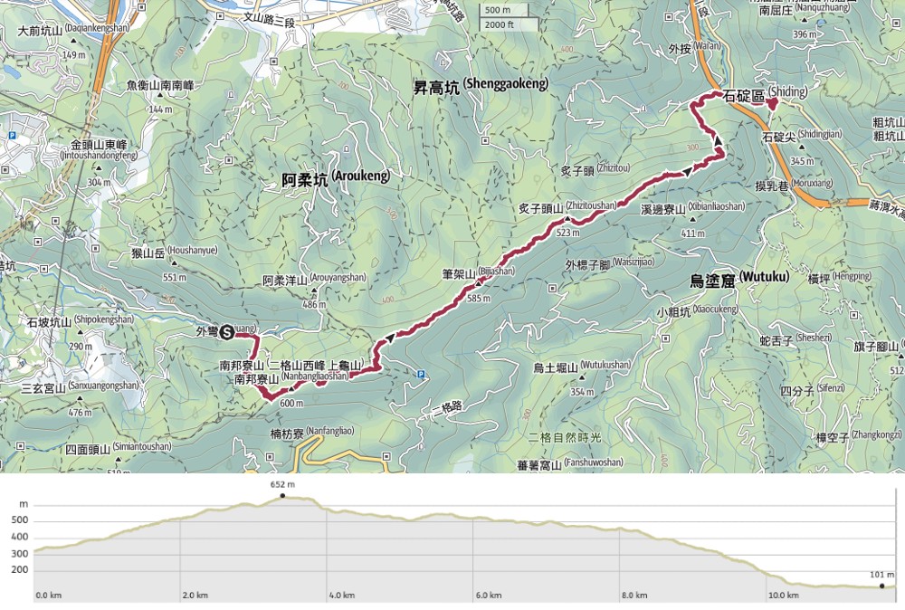 DISTANCE: 11.8km – If you’re not too fussed about walking the TSLT in its entirety then you could cut off Erge Shan and head straight up towards the Bijia Ridge Trail.