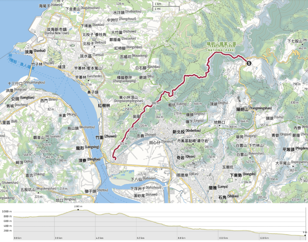 - Qingtian Temple to Guandu MRT Station – about 10km, mostly downhill and not nearly as interesting when done by itself.
