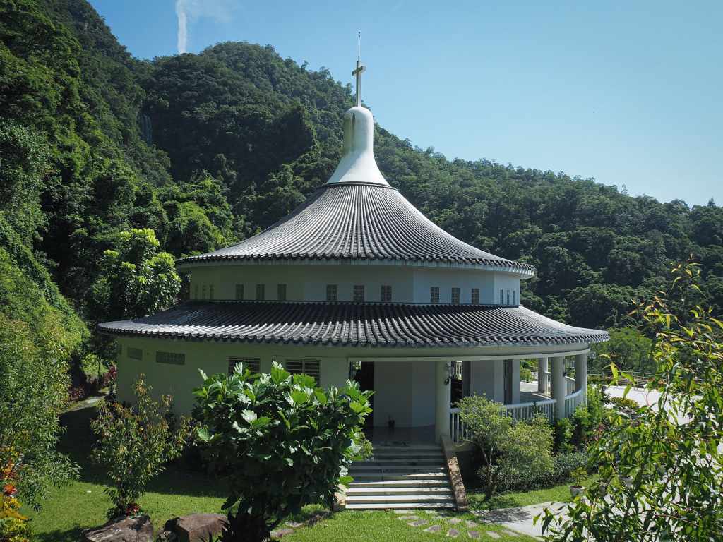The best view of the church can be seen if you walk a little further up the hill behind it, just don’t go too far if you’re unprepared, this is the start of the Matcha Mountain Hiking Trail (a five-hour out-and-back route to some of Yilan’s best views). If look up as you walk back down the track around the edge of the church, you can see the upper falls diving off the rock on its way to the pool below.