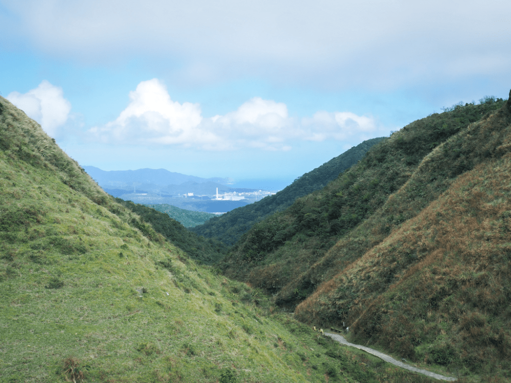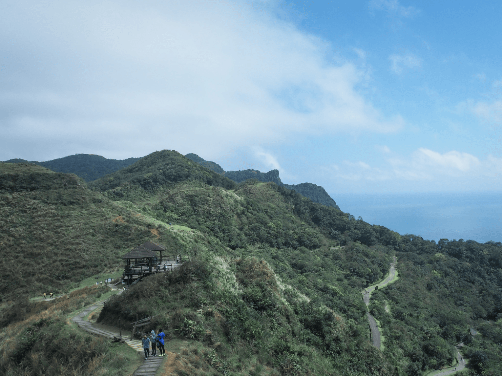 From the pavilions, you can look in two directions. Looking northwest you can see Caoling Historic Trail and Longmen Nuclear Power Plant close to the beach at Fulong.