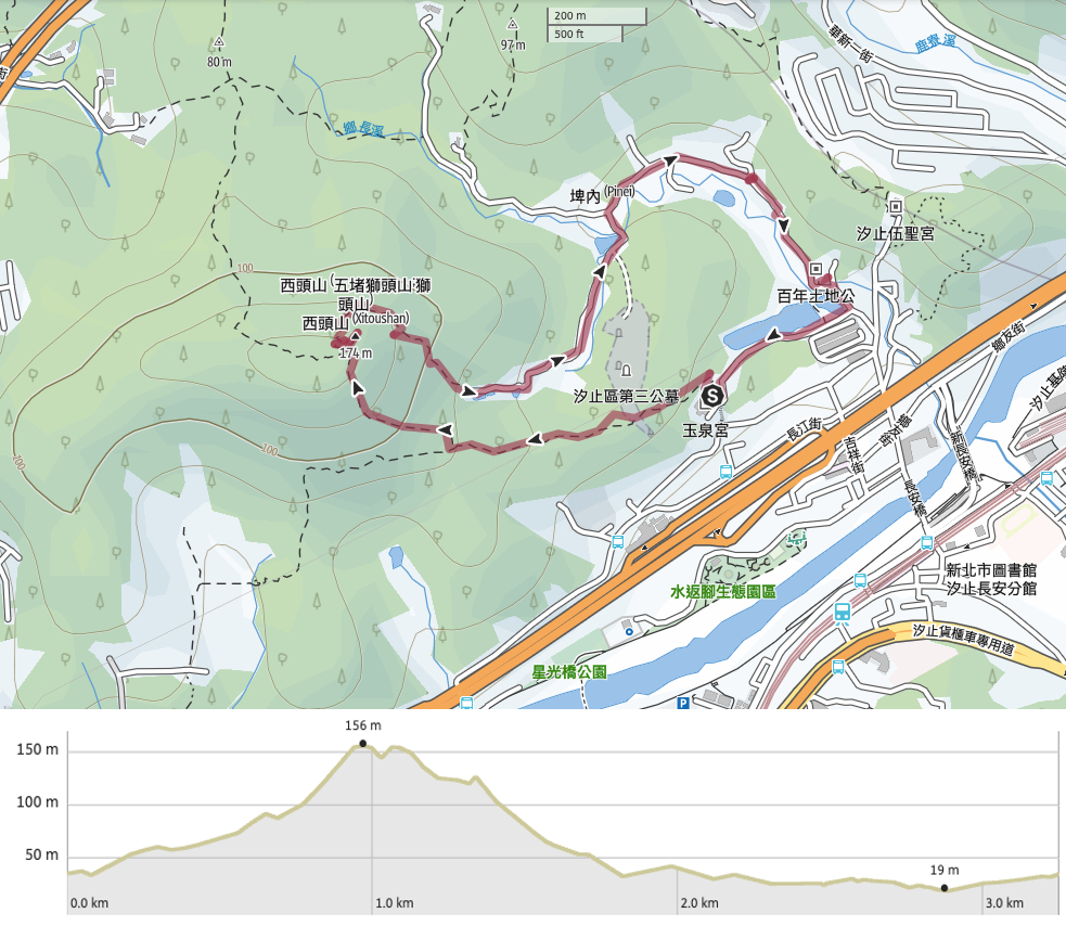 Public transport: It’s a fifteen-minute walk from Wudu Train Station to the trailhead temple (turn right onto Xiangzhang Road, turn left and cross Keelung River on Chang’an Bridge, head straight and pass under the freeway, pass a 7-Eleven, then when the road comes to a fork take the left turn, then left again at a small land god temple).