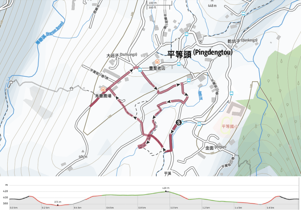 Eweishan Paddy Terrace and Pingding Street Trail Map