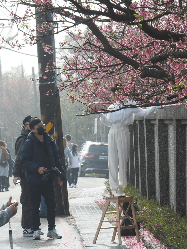 Keep heading uphill until you reach Pingjing Street, Lane 42. In blossom season, you’ll see a riot of pink up and down the street in both directions. On the day of my visit, some people were taking the photography very seriously (note the small step-up ladder).