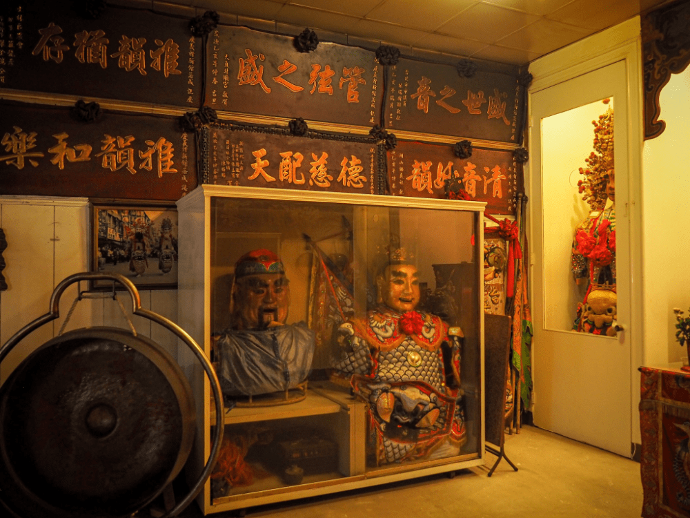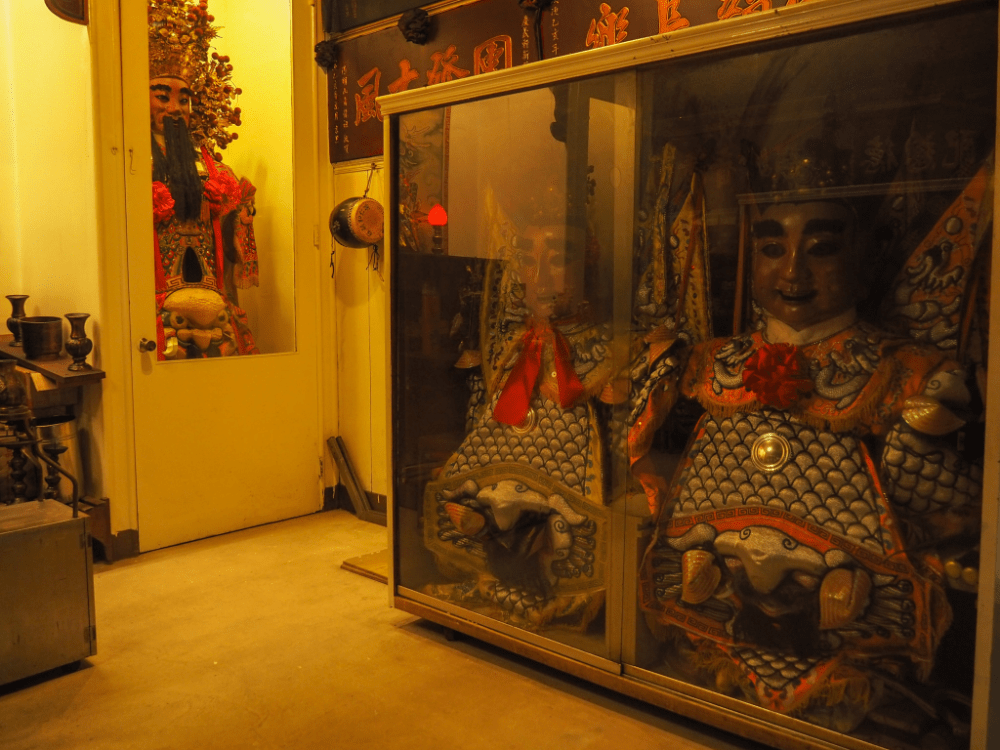 The main hall is a pretty standard Taoist temple, but walking into one of the side halls, I was greeted by this army of larger-than-life costumes. These in themselves aren’t all that strange–many temples in Taiwan have some, but the number of them in such a small space felt quite…strong.