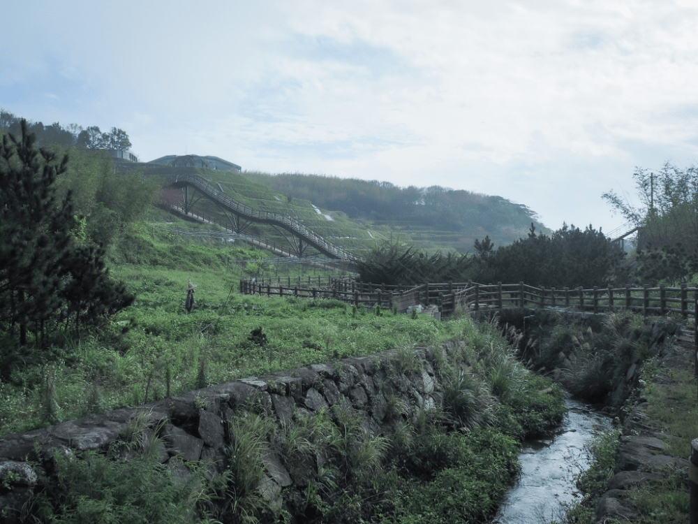 From the far side of the creek, you can get a clearer look at the bridge as it sits among the paddy terraces. What is its purpose? I’m not sure, but at least the gentle waving structure is quite pleasing to the eye.