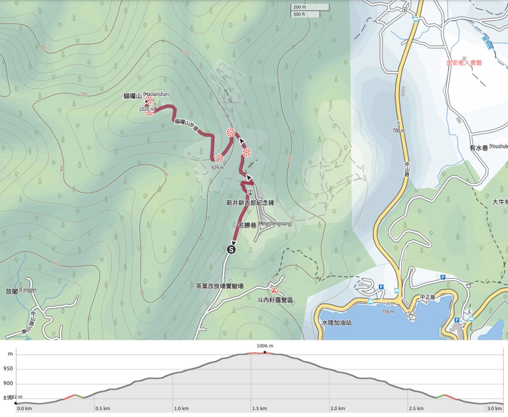 Google Maps address: The trailhead sits a little way up Lane 720, Zhongshan Road which is just a 20-25 minute walk from Shuishe Visitor Centre. There is roadside parking for cars and scooters on the lane, but I imagine it’s harder to park on weekends.