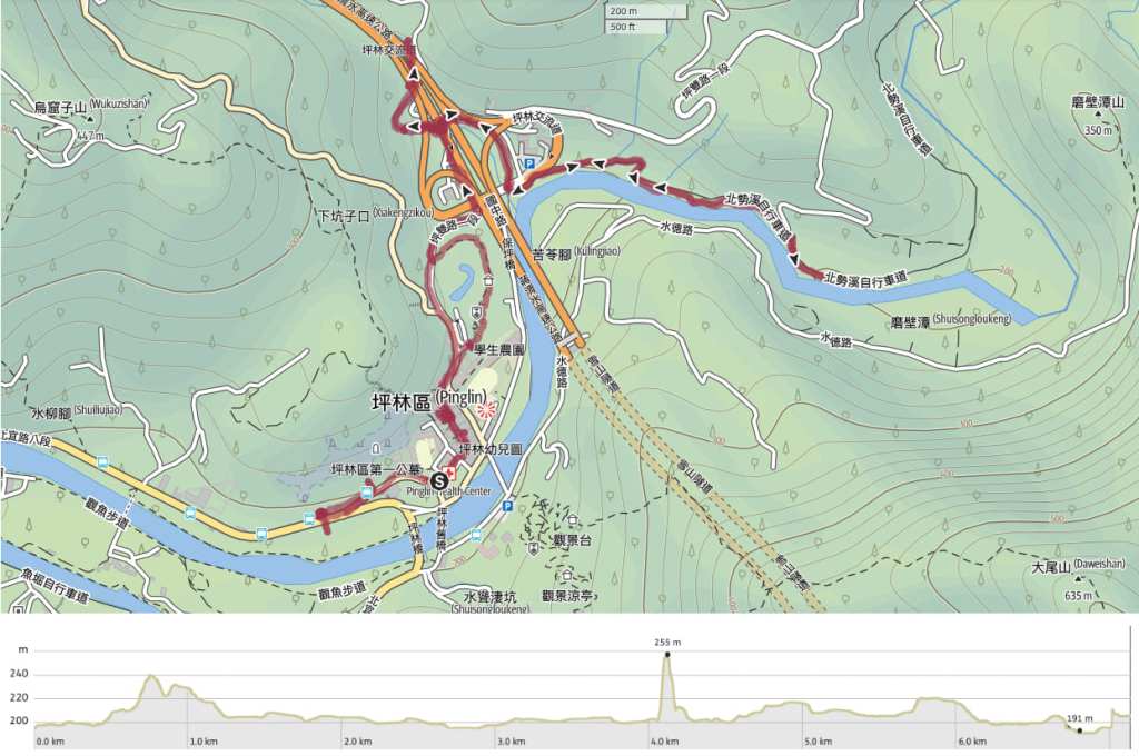 Google Maps address: I started my walk from Pinglin bus station, but the riverside trail starts from right underneath junction 15 of Freeway No. 5. There are several car parking spaces here, but not many.