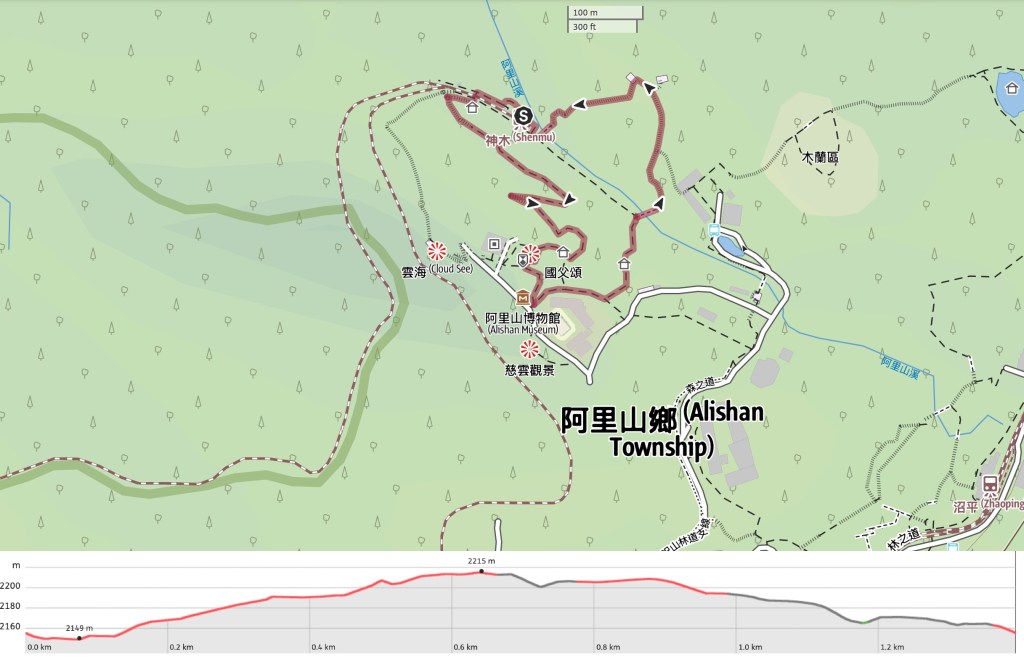 Google Maps address: I decided to start and end my walk at Shenmu Station (you can catch a train here from Alishan Station — this is within the park), but you could just as easily walk through the park to start from Shouzhen Temple. If you are planning to arrive here using your own transport, you’ll want to park along the stretch of roadside above the park and then walk or catch the shuttle bus to the park entrance.