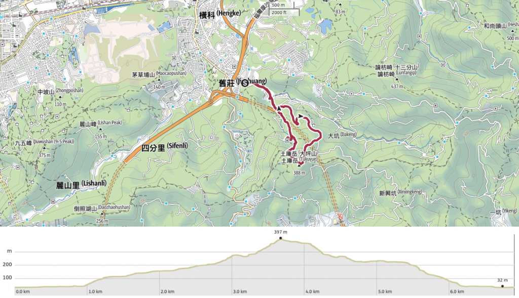 TOTAL ASCENT: Around 360 metres to a high point of 389m on the summit of Tukuyue.