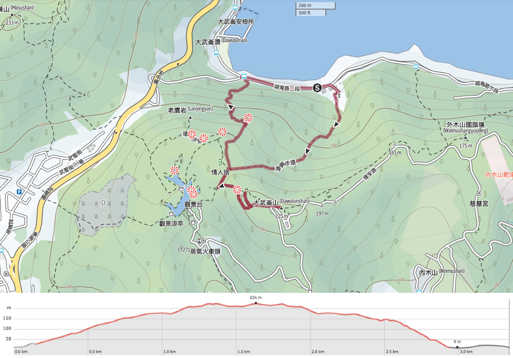 Public transport: Getting here on public transport is not particularly convenient. It either involves getting the one bus a day which will drop you at the trailhead, or else walking 30 minutes from Wusheng St. Entrance bus stop. A smarter choice would be to catch the train to Keelung Station, then get a taxi from there to Dawulun Beach (about 15 minutes). If you’re lucky, you might also get a taxi to take you back, but if not, you can walk to Wusheng St. Entrance and catch a bus back to Keelung from there.