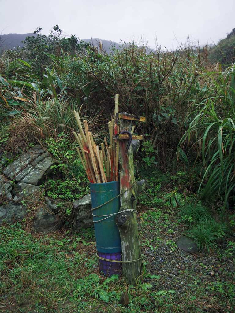Also by the entrance to the trail was this assortment of communal hiking sticks. The sign asks you to return it after use. (There were containers at the top of Haixing Trail and at the end of the alternative trail that we took to get back down.)