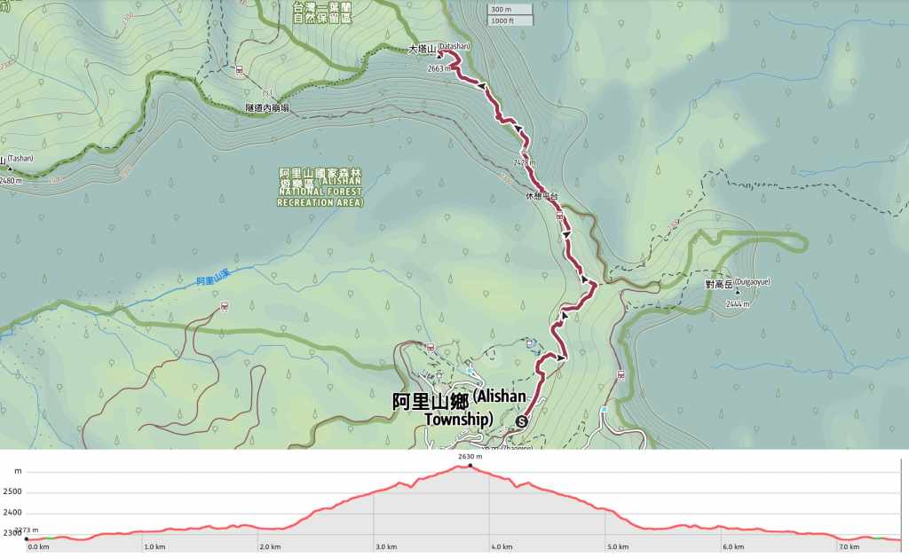 The observant amongst you might have noticed that within the heading and subheading of this route guide, I have already used two different names for the mountain in question. That is because this peak has multiple names in Chinese (and other languages). The name which appears on most maps is Mount Data (大塔山), Big Ta Mountain if we’re translating word for word, and Big Tashan, according to some. However, the name people seem to prefer is Ta Shan or Mount Ta (塔山). The confusion here probably stems from the fact that there is Big Ta Mountain and a Small Ta Mountain (小塔山 or Mount Xiaota), and these two (along with several other nearby peaks) are collectively called the Ta Mountain Range (塔山系). In addition to these two names, it is known as Hocobu (also written as Hohcʉbʉ) in the language of the Tsou—the indigenous people who live in Alishan Township. Finally, I have also seen it called Mount Daito (or sometimes Daitou), which I think must be a hangover from the Japanese name for it—after all, Alishan was first developed as a foresty (and later recreation) area by the Japanese during the Japanese colonial era.