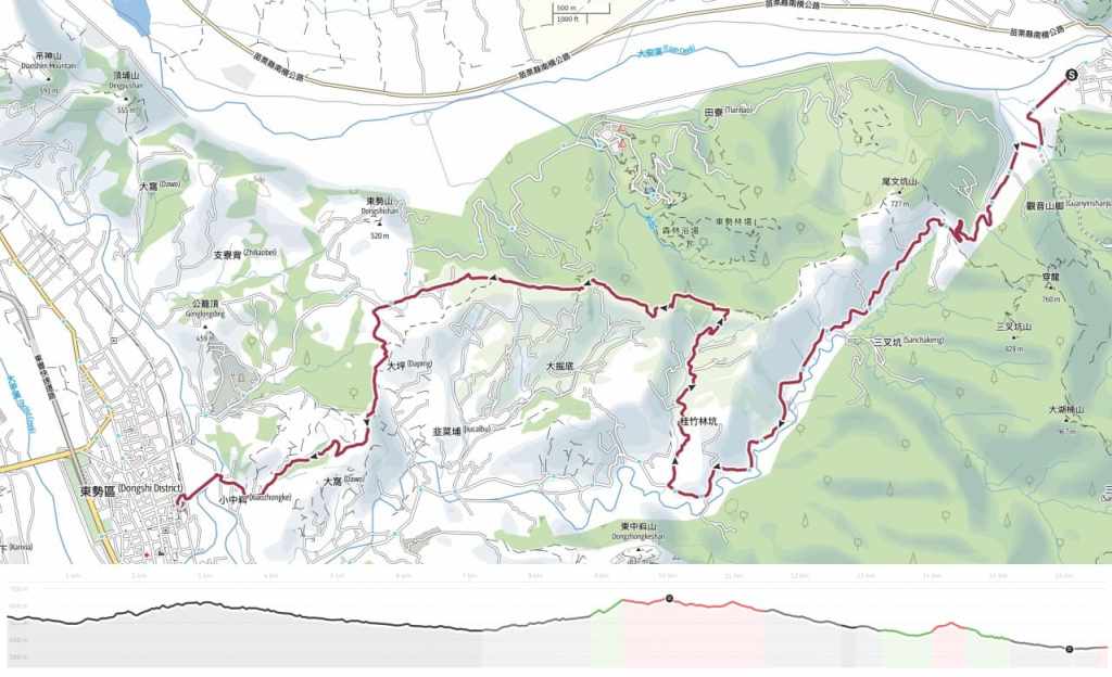 - RSA60: Chuanwu Ai Yong Historic Trail → Xiaozhongke Trail → Dongshi Hakka Cultural Park (穿霧隘勇古道 → 小中嵙步道 → 東勢客家文化園區)