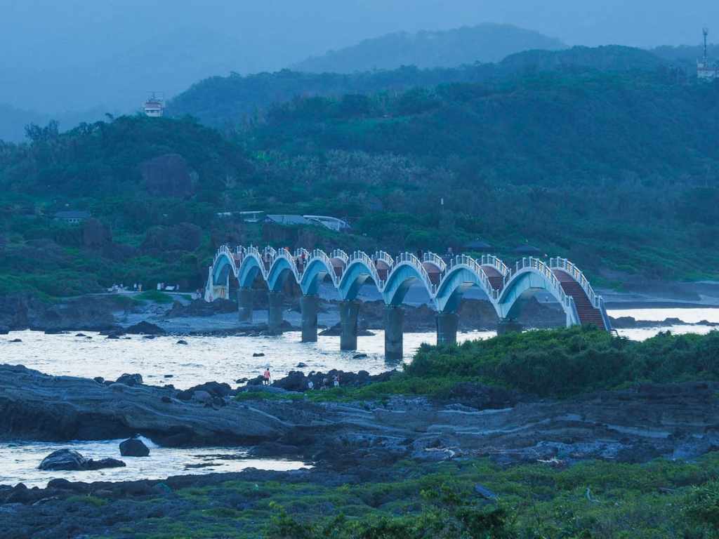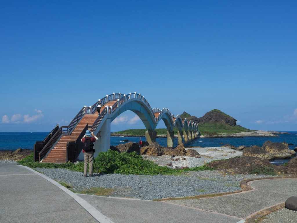 Sanxiantai is a former isthmus — now islet — located on Taiwan’s southeast coast, just north of Changbin. Formerly grazing land for the local Indigenous folks’ livestock, the islet is now one of the most popular sightseeing spots in the region (the other being Baxian Cave — a significant site of prehistoric habitation). People are drawn here to admire the arresting sight of the eight-arched bridge that connects the coast to the islet, and most never go much further than the mainland-side end of the bridge. However, if you push on a little further, the islet has much to explore, including sea caves, snakes, and fossilised corals.