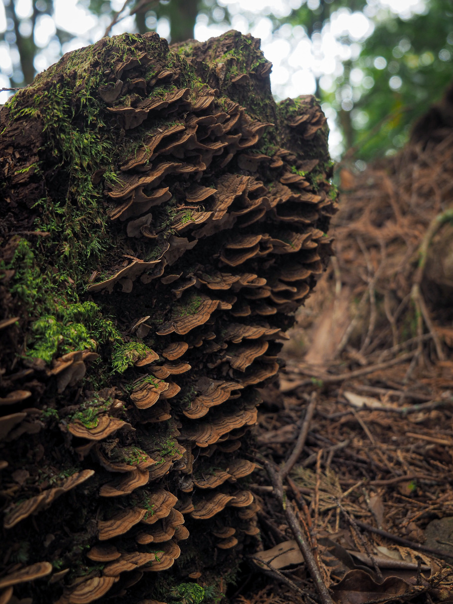 Thankfully, the calming scenery and distracting details help to distract from the relentlessness of the climb. I found much to look at in the form of mushrooms, pine cones (I wish I’d amassed a collection of the many different varieties we saw), and the pleasing glittery quality of the rocks.
