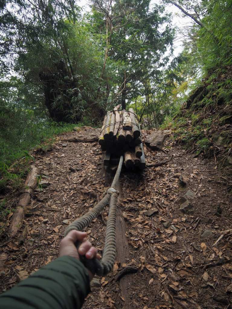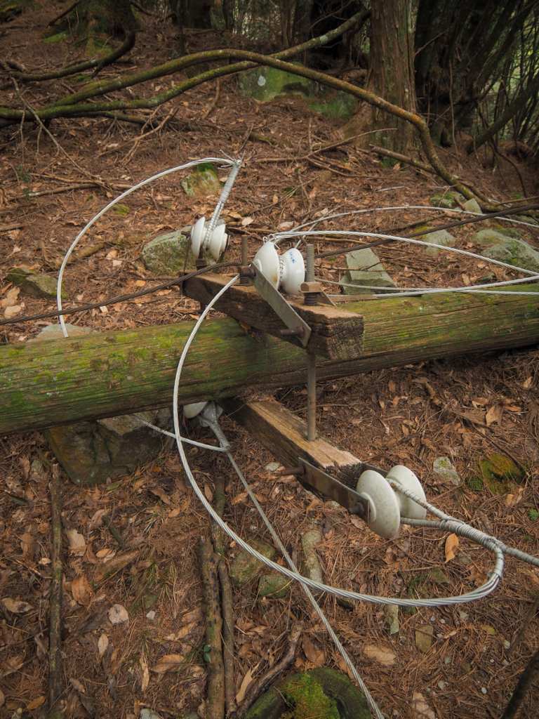 Like with a lot of the trails in Taiwan’s old logging areas, you can still spot a fair amount of historic infrastructure littering the forest. Here, an old electrifying and telecommunication line snakes through the trees, sometimes intact, sometimes not. This pole here had collapsed at sole point.