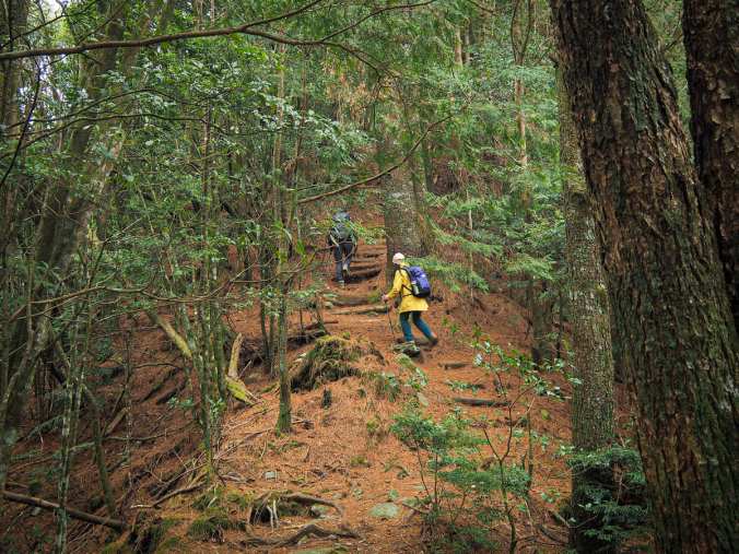 From the road, the trail climbs steeply through densely forested land for a neat kilometre.