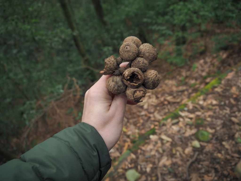 Some rather large and solid acorns. Unlike the ones I’m familiar with from back home, these ones are almost entirely encased in their cups. A fair few of them had been nibbled on by something or other — possibly one of the red and white giant flying squirrels that the park is famous for.