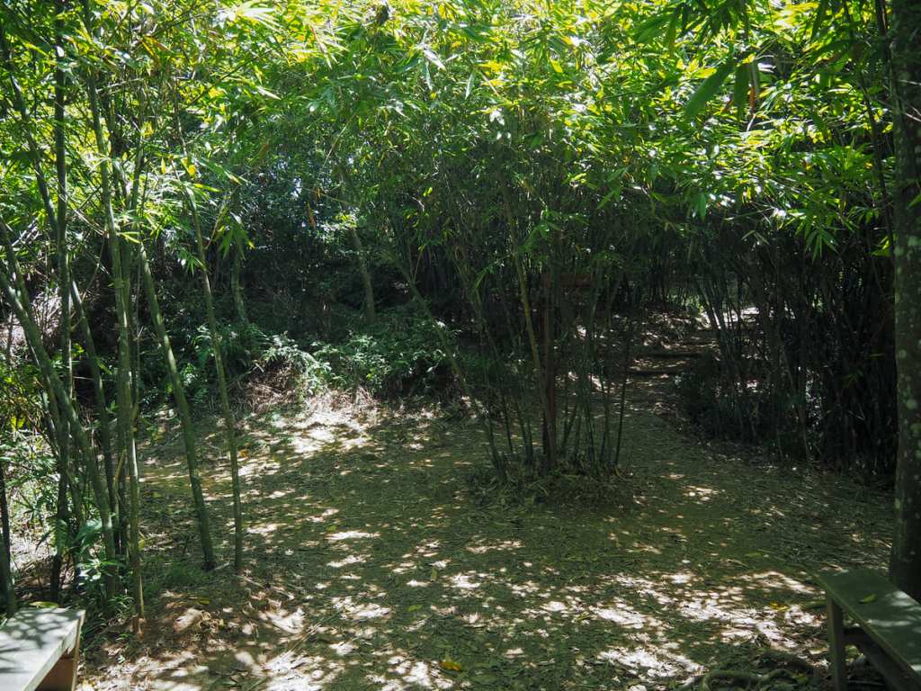 Some of the benches are angled towards a gap in the trees which affords a view over the nearby farmland. The large red building is Fushan Qingshui Zhushi Temple (福山巖清水祖師廟). Beside it is one of an assortment of sedimentation ponds known collectively as Shen’an Pool (沈澱池). The tanks help to extend the useful lifespan of Shimen Reservoir by collecting silt washed down during typhoons or heavy rains. The silt is then taken by truck to various land reclamation projects around Taiwan’s coastal area. A secondary feature of the ponds is their benefit to local wildlife. Numerous species of aquatic plants can be seen growing in or beside the pools, which in turn, provide sustance for minibeasts and waterbirds. In April, it’s evidently a good place to go firefly spotting.