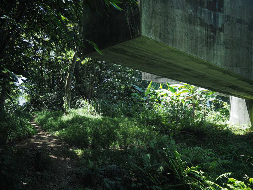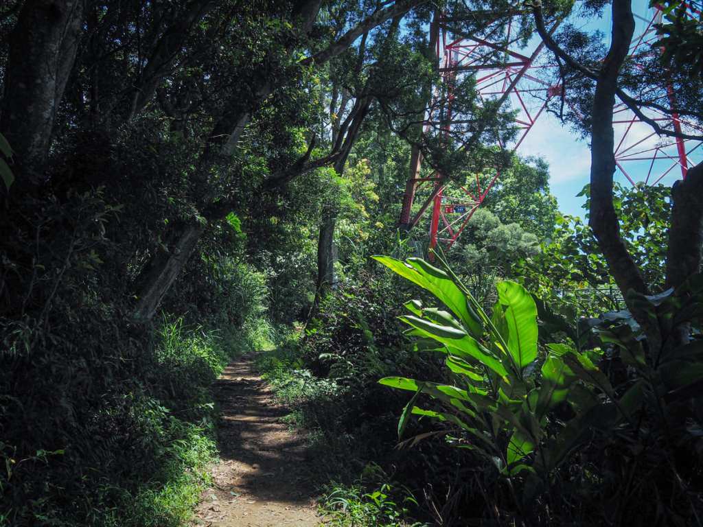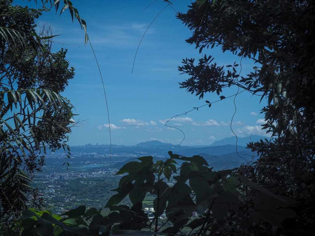 A leafy window frame to the left of the path revealed the unmistakable profile of Mount Guanyin rising just to the right of Linkou’s highrises, and further east, the mountainous mass of Yangmingshan National Park reaches to the clouds.