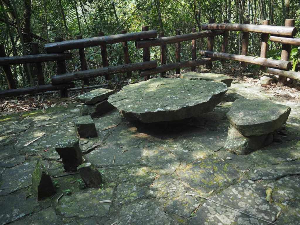 The picnic table, as it transpires, is known as “No Sharing Rock” (不分享石). According to the story recounted on a nearby information board, the three upright stones clustered tightly together are a shared fire pit, and as per Tsou custom, food cooked on the communal fire pit should be shared among the tribesfolk. But 300 years in the past, when Lijia wasn’t yet settled, a greedy (or maybe just hungry) hunter caught and killed a wild boar, then hid out here in the forest, cooking it over the fire pit and enjoying it all by himself. When his elders found out, they gave him a public beating and named the stone table “No Sharing Rock” to remind others not to make the same mistake.