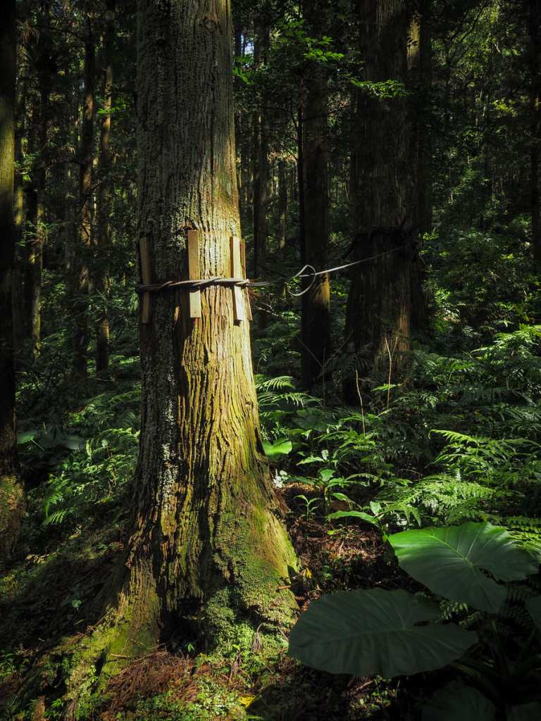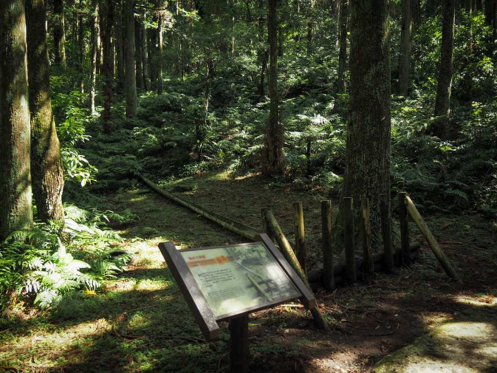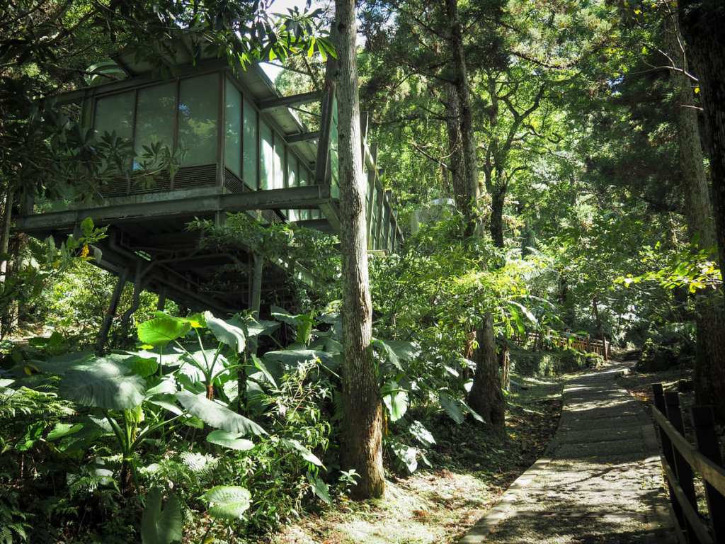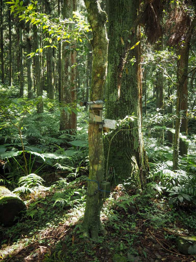 These trees stood opposite each other on either side of the path caught my attention. They’re not part of the logging history installation, and initially, I guessed they’d probably been placed here to monitor noise levels in the park. (In the time I’ve been in Taiwan, there seems to have been an upswell of interest in things like the Quiet Parks movement and Dark Sky Parks. In recent years, Yangmingshan National Park received recognition as the world’s first Urban Quiet Park, and Taipingshan’s Cueifeng Lake Circular Trail won international attention for becoming the world’s first certified Quiet Trail.) However, the label attached to one of them indicates that in fact, they were placed here by Academia Sinica’s Biodiversity Research Centre to record the impacts of extreme weather on biodiversity.
