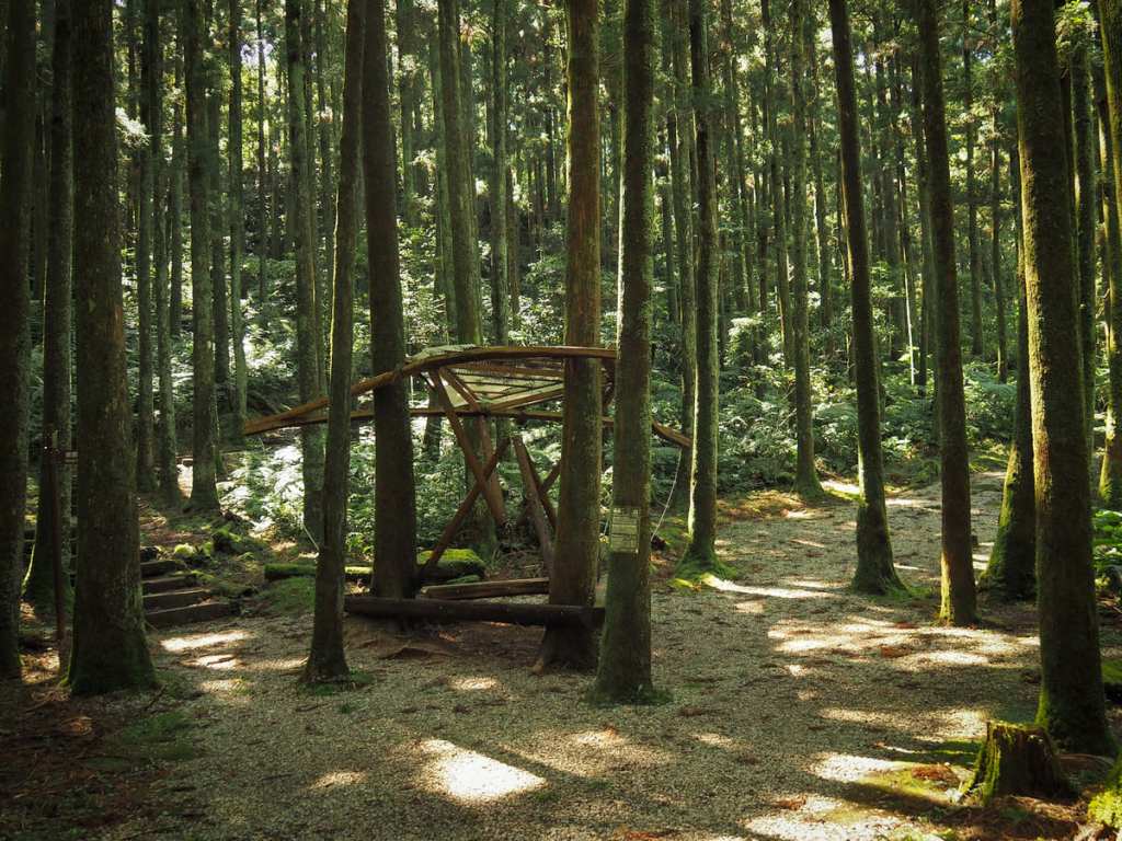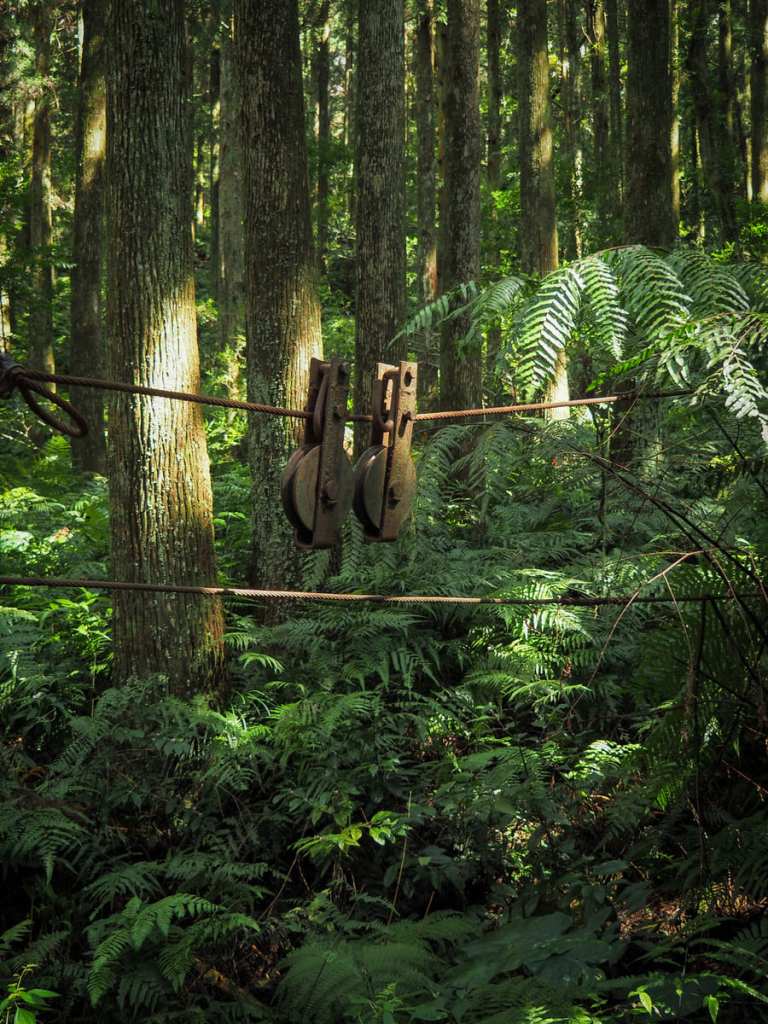 One unique feature of this particular walk is that it introduces visitors to a range of logging techniques that would have been employed in the park in years gone by. This is the first of several such installations that you’ll come across. On the left is a single-cabled, gravity-operated system that was nicknamed “Wild Monkey-Style Skidding” on account of the way that the transported logs would appear to swing through the trees like a monkey. Then on the right is a double-cabled cableway which would have afforded the operators more control over the speed of the logs’ descent.