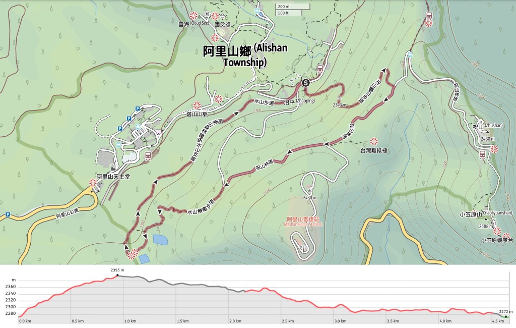 Route type: Technically, the Shuishan Giant Tree Trail is an out-and-back route, but combining it with part of the Zhushan Sunrise Viewing Trail makes it into a loop.
