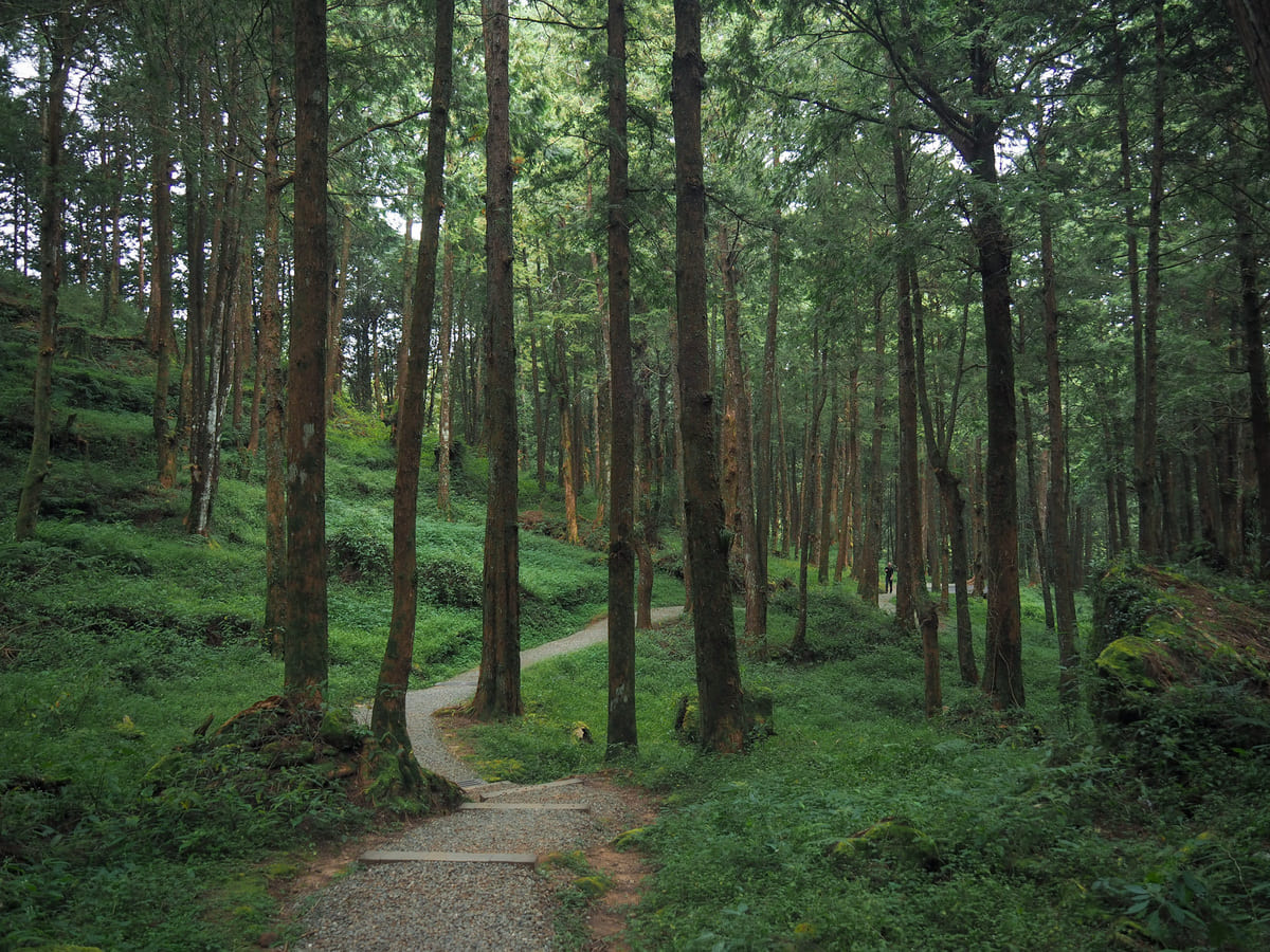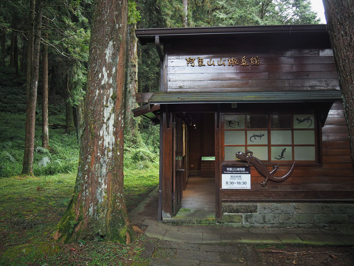Before the path takes you into the trees, it first passes by a couple of wooden buildings where you can learn about the park’s forestry history (complete with an uncannily lifelike figure of a camphor extractor), and the endangered Alishan salamander. Unfortunately, all of the exhibits are presented exclusively in Chinese.