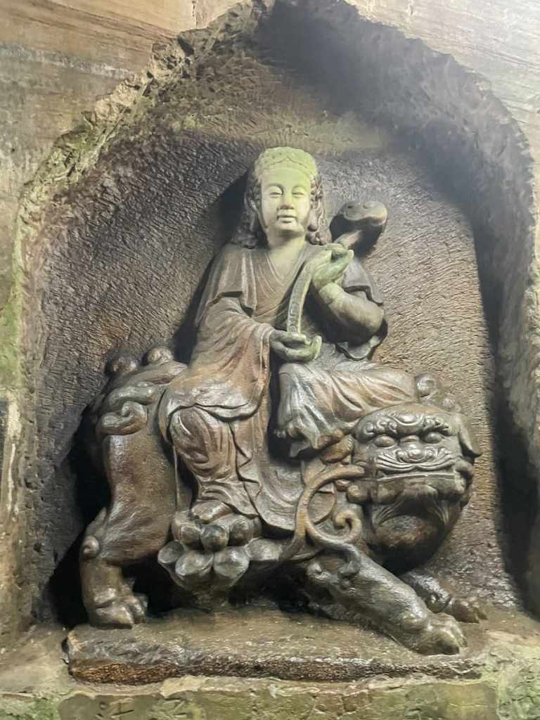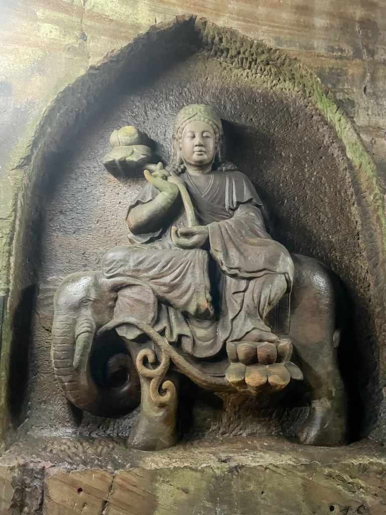 Deeper in, exquisite carvings of Buddhist figures line the walkway.